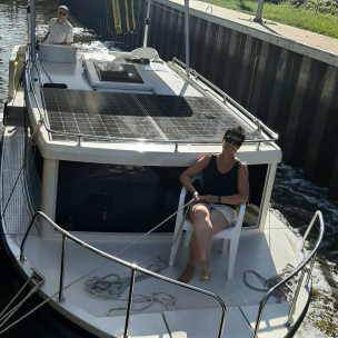Seit ich 2019 das erste Mal eine Voyager 860 auf der Havel gesehen hatte, bin ich fasziniert von dem schlichten aber überaus praktischen Design dieses kompakten Bootes. Natürlich informierte ich mich auf der Homepage über die Voyager und Woterfitz. Dabei fiel auch der Blick auf den Bericht zur Entwicklung eines Solarbootes, das mich geradezu elektrisierte. In 2021 hatten wir die Gelegenheit das erste Serienmodell der Voyager 900e im Rohbau auf der Werft zu besichtigen. Nun konnten wir den neuen Bootstyp dann endlich ausprobieren.