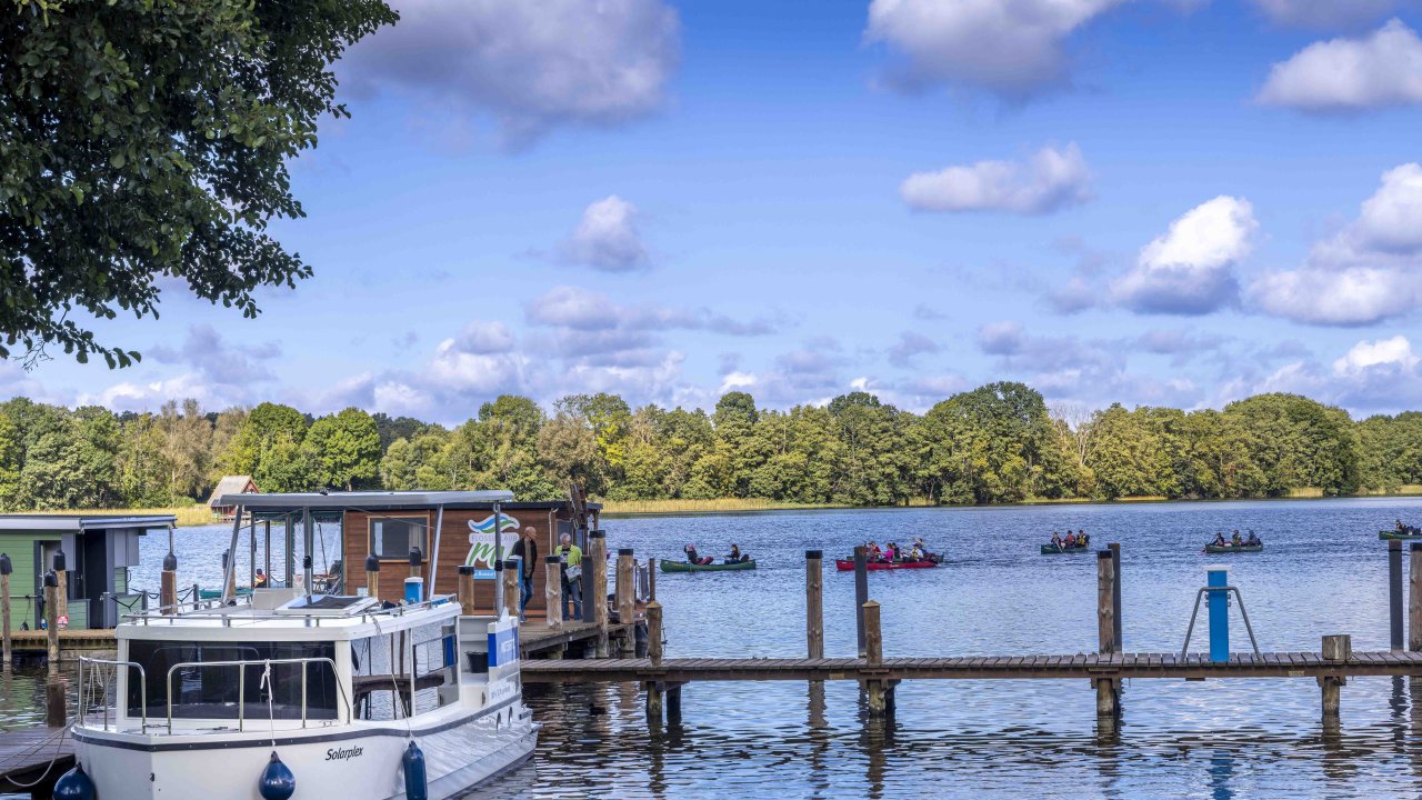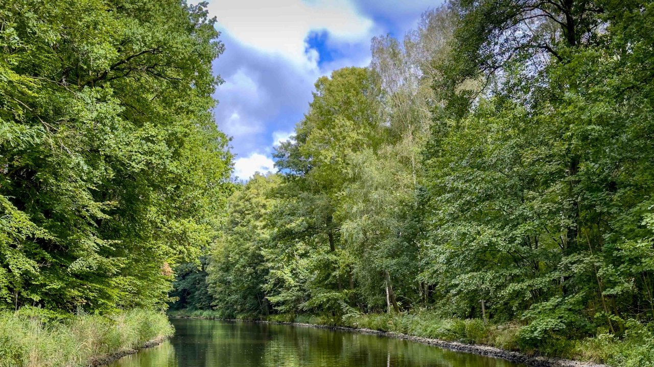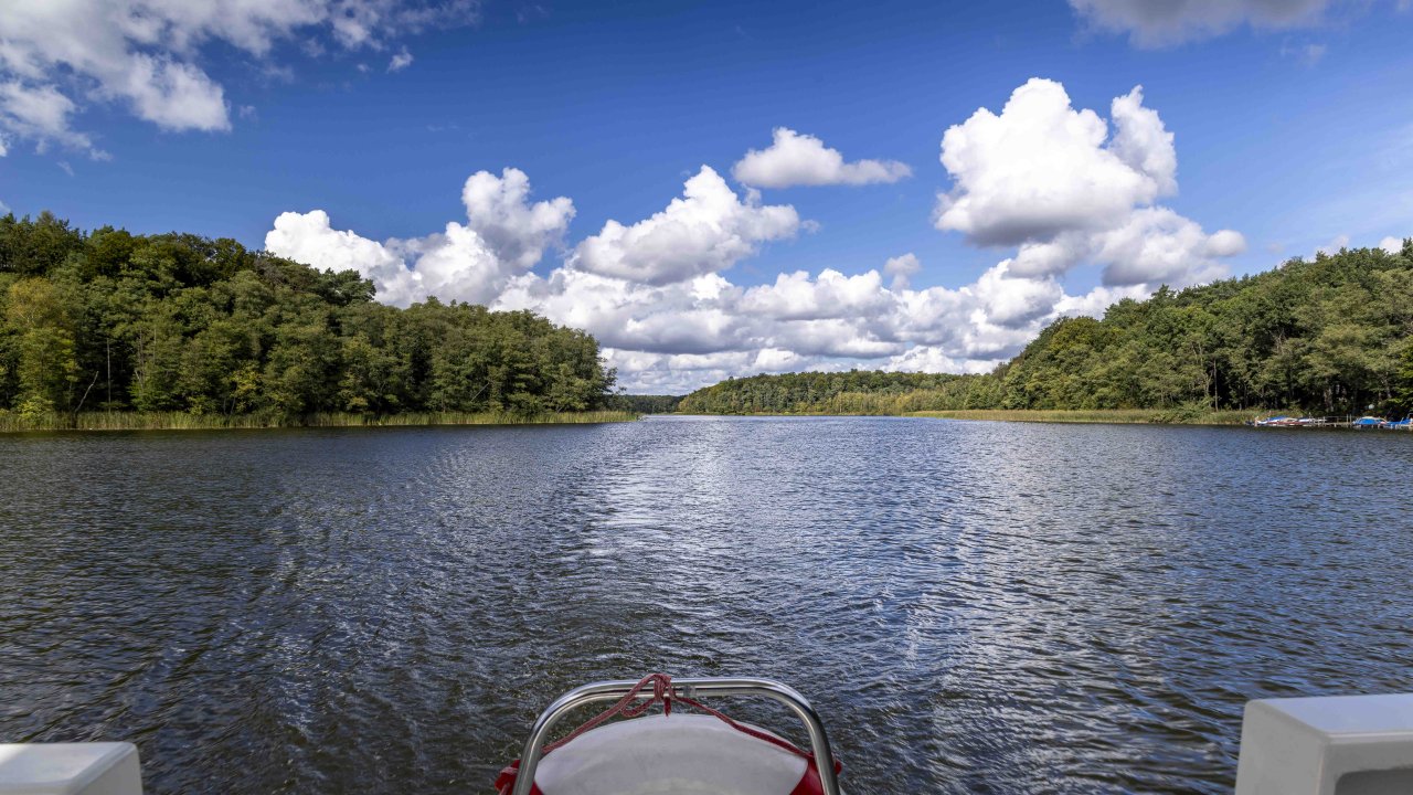 Nach der Überquerung der kleinen Müritz änderte sich die Szene. Das Wasser auf den Kanälen und kleinen Seen war meist spiegelglatt und das Boot lief ruhig, lautlos und abgasfrei dahin. Meine Frau war wieder glücklich.